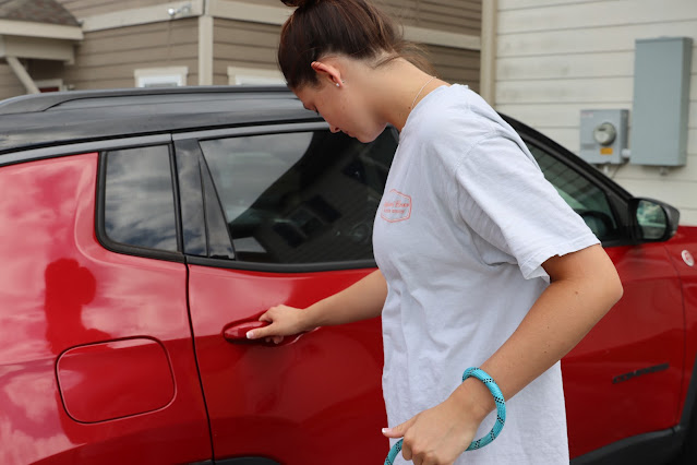 Chamblee Russell goes to her car to get her water bottle out that she left from practice. Hydration is key in a student-athletes life.